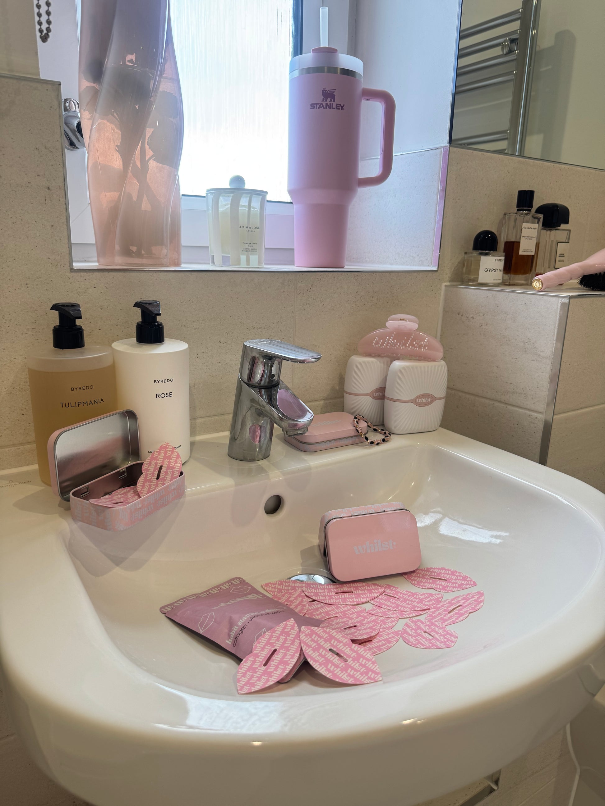 to keep your collagen + vitamin infused mouth tapes neatly stacked on your bedside table or vanity. holds up to 30 mouth tapes. perfect for travel